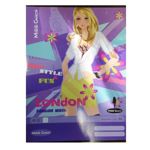 Termékjellemzők: - Miss Chick kockás füzet. - A/4 méretben. - 32 lapos. - kockás kivitelben.
