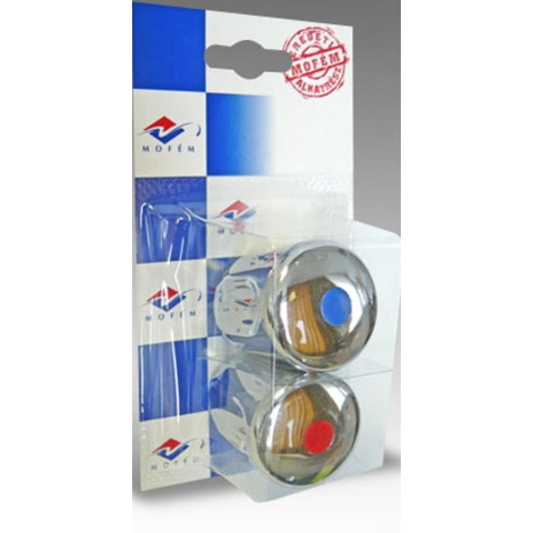 Fogantyú az Eurosztár csaptelep-családhoz. A csomagolás tartalma: 2 db fogantyú, 1 db piros színjelző, 1 db kék színjelző, 2 db M 4 x 10-es csavar.