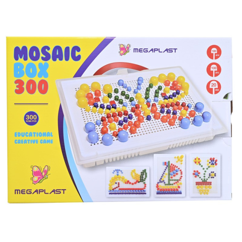 Korosztály: 3 - 6 év Mozaik 300 db-osKészíts lenyűgöző képeket a Mozaik 300 db-os képkirakóval, amely lehetővé teszi, hogy műanyag tüskék segítségével valósággá váltsd a képzeleted! A mozaikkal különféle színes képeket alkothatsz, legyen szó állatokról, növényekről, építményekről vagy járművekről – a lehetőségek korlátlanok, csak a fantáziád szabha