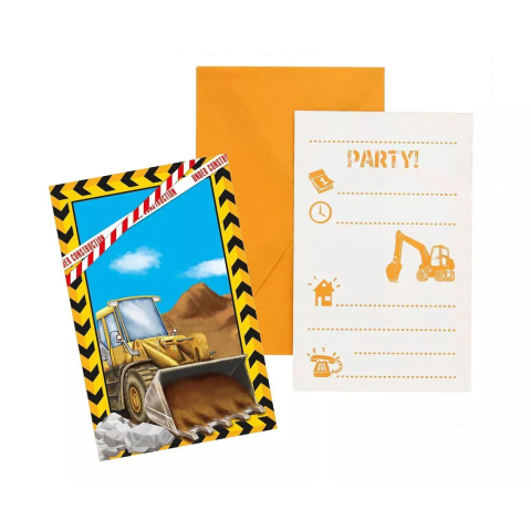 Construction, Építkezés meghívó 6 db-os Tartalma: 6 db meghívó + 6 db boríték Anyaga: papír FSC (Forest Stewardship Council)