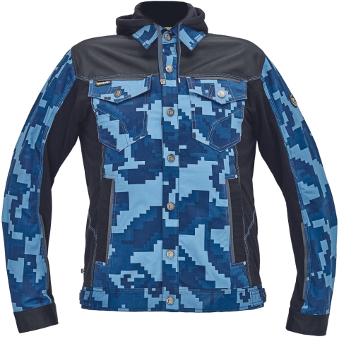 NEURUM CAMOU kapucnis dzseki navy 54 • férfi munkakabát férfi munkakabát innovatív, pamutgazdag, rugalmas TRIFIBETEX, illetve TRIFIBETEXPRO® anyagokból CORDURA® betétekkel, digitális terepmintával, fém gombok, állítható ujjvégek, 2 oldalsó zseb, 2 cipz