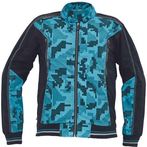 NEURUM CAMOU dzseki petrol kék 56 • férfi munkakabát innovatív, pamutgazdag, rugalmas TRIFIBETEX® és TRIFIBETEXPRO® anyagokból CORDURA® betétekkel • digitális terepmintával • cipzáras kialakítás • állítható mandzsetták • 2 oldalzseb • 2 cipzáras mellzs