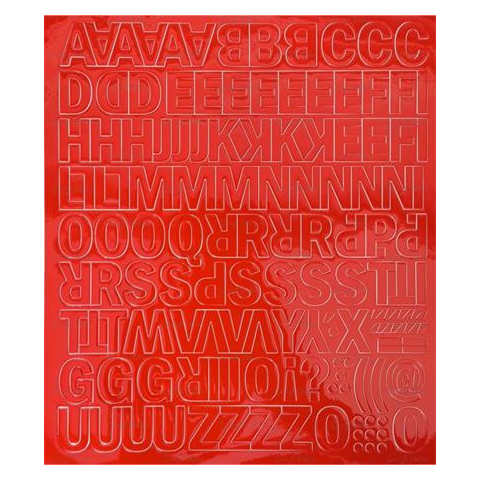 Öntapadós matrica, 2 cm-es, betűlap, piros Öntapadós vinil tapétából hőpréssel stancolt betűlap. - a kívánt öntapadós karakterek könnyedén kiszedhetőek - a méret a betű magasságát jelenti - karakterek magassága: 2 cm - piros alapon fehér betűk