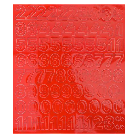 Öntapadós matrica, 2 cm-es, számlap, piros Öntapadós vinil tapétából hőpréssel stancolt számlap. - a kívánt öntapadós karakterek könnyedén kiszedhetőek - a méret a szám magasságát jelenti - karakterek magassága: 2 cm - piros alapon fehér számok