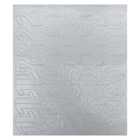 Öntapadós matrica, 3 cm-es, számlap, fehér Öntapadós vinil tapétából hőpréssel stancolt számlap. - a kívánt öntapadós karakterek könnyedén kiszedhetőek - a méret a szám magasságát jelenti - karakterek magassága: 3 cm - fehér alapon fekete számok