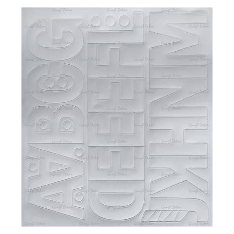 Öntapadós matrica, 5 cm-es, betűlap, ABC első fele, fehér Öntapadós vinil tapétából hőpréssel stancolt betűlap. - a kívánt öntapadós karakterek könnyedén kiszedhetőek - a méret a betű magasságát jelenti - karakterek magassága: 5 cm - az ABC első felét