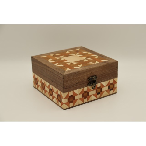 Cégünk által gyártott egyedi készítésű mintás fa karóratartó. Méret (szx mé xma): 16,5cmx 16,5cmx 9,5cm,  puha belső borítással. Hasznos információ: nem bírja a párát, a nedvességet és az erős hő behatását!