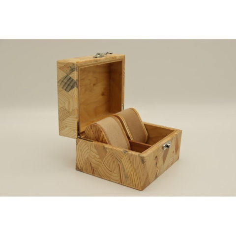 Cégünk által gyártott egyedi készítésű mintás fa karóratartó. Méret (szx mé xma): 15cmx 12cmx 9,5cm,  puha belső borítással. Hasznos információ: nem bírja a párát, a nedvességet és az erős hő behatását!