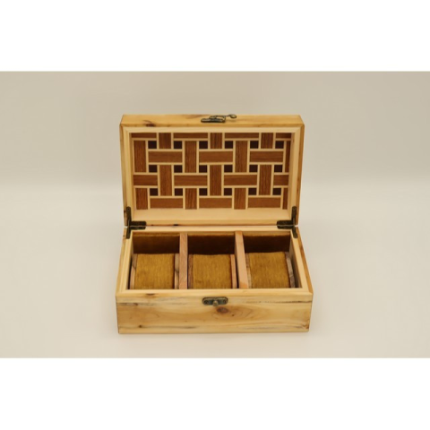 Cégünk által gyártott egyedi készítésű mintás fa karóratartó. Méret (szx mé xma): 21 cmx 13 cmx 10 cm, puha belső borítással. Hasznos információ: nem bírja a párát, a nedvességet és az erős hő behatását!