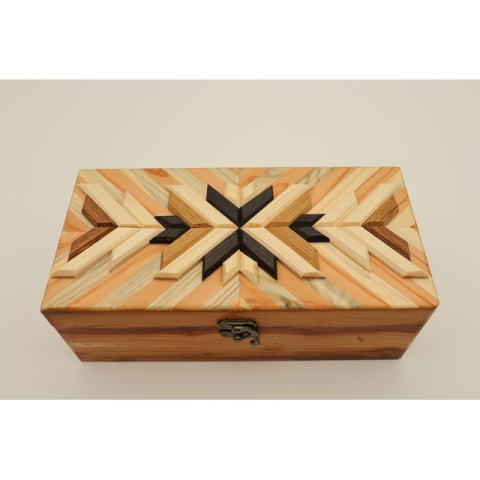 Cégünk által gyártott egyedi készítésű mintás fa karóratartó. Méret (szx mé xma): 27cmx 14cmx 9,5cm,  puha belső borítással. Hasznos információ: nem bírja a párát, a nedvességet és az erős hő behatását!