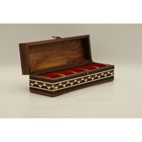 Cégünk által gyártott egyedi készítésű mintás fa karóratartó. Méret (szx mé xma): 32,5 cmx 10 cmx 9 cm,  puha belső borítással. Hasznos információ: nem bírja a párát, a nedvességet és az erős hő behatását!
