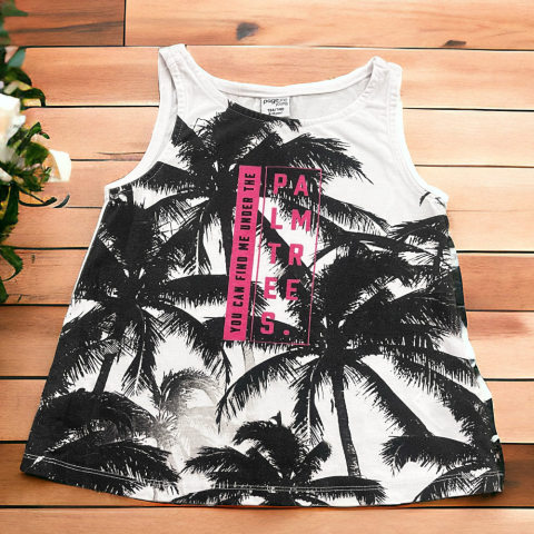 Elején nagy pálmás mintával, kellemes pamut anyag. mell:2x35cm hossz:45cm Hibátlan állapotú.