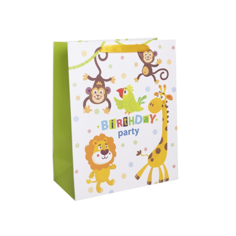 Korosztály: 3 - 99 év pírtasak szülinapos 18x23 cmEgy színes és vidám ajándéktasak, amely tökéletes választás születésnapi ajándékok csomagolásához.A tasak születésnapi motívumokkal van díszítve, élénk színekben, amelyek még inkább emelik az ajándékozás örömét. A praktikus fogantyúval könnyedén hordozható, így kényelmes megoldás minden születésnapi alk
