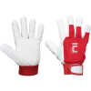 Varrott védőkesztyű finom kecskebőr tenyérrel, pamut szövet kézháttal. Köröm felett bőr takarás. Rugalmas, tépőzáras mandzsetta.