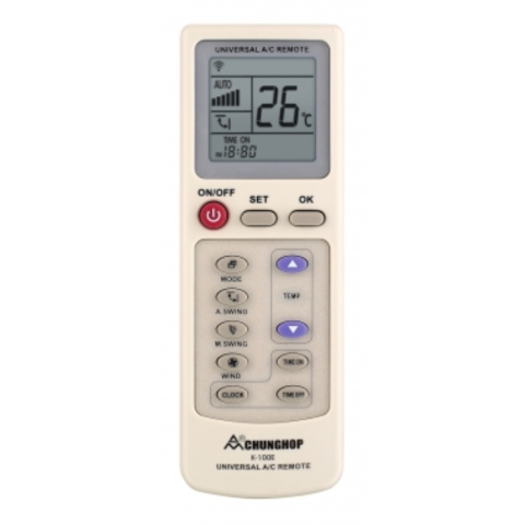 Univerzális K-100E klíma távirányító. Ez azt jelenti, hogy gombkiosztásban megegyezik a gyári távirányítóval, de nincs rajta márkajelzés. Az utángyártott távirányítóknál nincs szükség beállításra, a távirányító megérkezésekor az elemek behelyezése után egyből tudja használni az adott eszközzel(TV, DVD, stb..). A mennyiben nem találja a készülék típusszámát, küldje el részünkre és utánanézünk melyik távirányító jó hozzá.