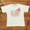 Egyenes szabású, kerek nyakú, kellemes pamut anyag. Elején horgolt pillangóval és csillámos felirattal. mell:2x47cm hossz:59cm Újszerű állapotú.
