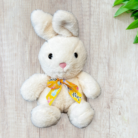 Puha vajszínű plüss nyuszi, masnival. Méret:30cm Hibátlan állapotú.