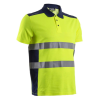 BIRD-EYE KÖTÉS: 55% pamut / 45% poliészter – 150g/ m2 - UPF 35+. FÉNYVISSZAVERŐ csíkok: rávarrt, 6 cm (S-L), illetve 5 cm (XL+) széles, mikrogyöngyös. Galléros nyakkivágás, rövid ujjú póló. Kényelem: pamut réteggel érintkezik a bőr. Kontraszt színű be