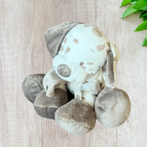 Pöttyös plüss kutyus, pihe puha anyagból. Méret: 29cm Hibátlan állapotú.