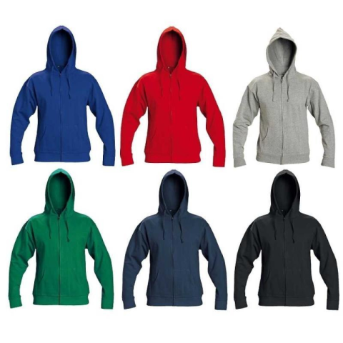 Alapanyag: 80 % pamut, 20 % poliészter, 290 g /m?Kardigán kapucnivalHúzózsinór a kapucnibanFém cipzárasBolyhos belsőAlsó szegés és mandzsetta kötött, rugalmas anyagból készült
