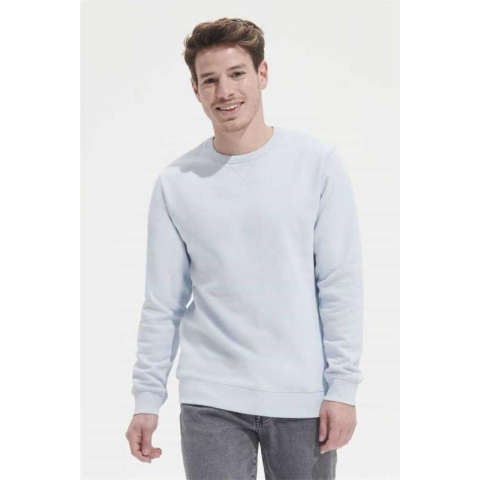 Minőség, 80% gyűrűs fonású pamut - 20% poliészter, Csiszolt bélés, Külső: 100% pamut, Stílus, Környak V-alakú dísztűzéssel, 2x2 bordázott mandzsetta. gallér és szegély, Bevarrt ujj, Oldalvarrott, Félhold alakú belső gallér, Pántos nyak.