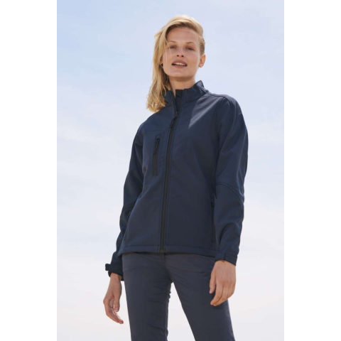 QUALITY - SOFTSHELL 34094% polyester - 6% elastane8000 mm waterproof breathablemembraneSTYLE - FEMININE & SPORTY2 zipped side pockets1 zipped chest pocketWaist adjustable drawstringAdjustable cuffs with Velcro® tabSBS zips~BREATHABLE SOFTSHELL - 3 LAYERS