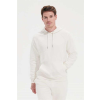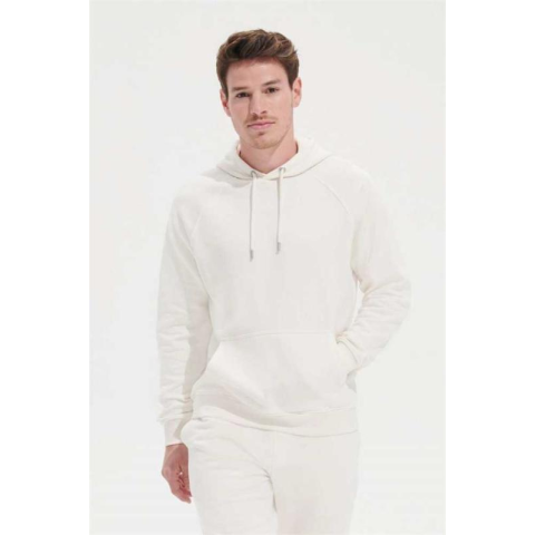 Minőség, 80% organikusan termesztett pamut - 20% újrahasznosított poliészter, 3 fonal, Csiszolt bélés, Külső: 100% organikus pamut, Stílus, Oldalvarrott, Raglán ujj, 2x2 bordázott mandzsetta és szegély, Félhold alakú belső gallér, Nyakpánt, Húzózsinór