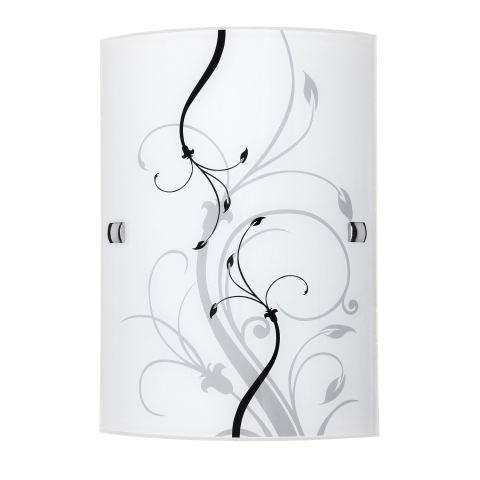 26 cm magas, 18 cm széles, modern megjelenésű falilámpa, amely fém és műanyag szerkezettel, és fekete-fehér mintás, fehér, íves kialakítású opálüveg lámpaburával rendelkezik. E27-es foglalatú, max. 60 W teljesítményű hagyományos, halogén, kompakt, vagy LED fényforrással is használható. Kialakításának köszönhetően a fényforrás cseréje, illetve a lámpatest tisztítása gyorsan és egyszerűen elvégezhető.