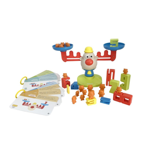 Korosztály: 3 - 99 év Mérleghinta macikkal – Számolós játék feladványkártyákkalTanulás játékkal? Igen! A Mérleghinta macikkal egy izgalmas és fejlesztő játék, amely játékos módon segíti a gyerekeket a számolás elsajátításában. A kétkarú mérleg, a színes kismacik és nagymacik, valamint a műanyag számok és feladványkártyák mind hozzájárulnak ahhoz, hogy a