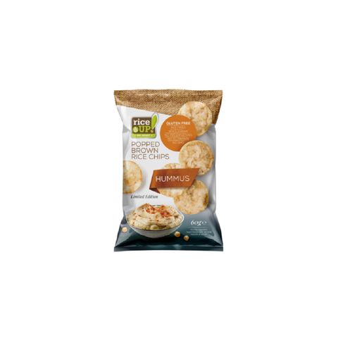 Teljes kiőrlésű barna rizs chips hummus ízesítéssel. Gluténmentes, nem olajban sült.