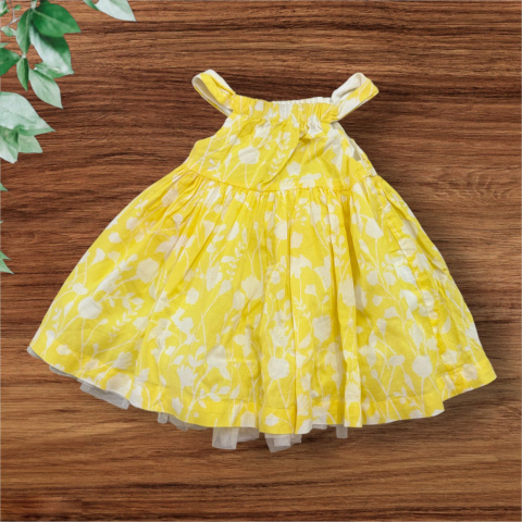 Sárga, tüllös ruha Bőszabású, oldala cipzáros, tüll szegélyes alsó szoknyás. Kellemes pamut anyag. mell:2x18cm hossz:35cm Hibátlan állapotú.