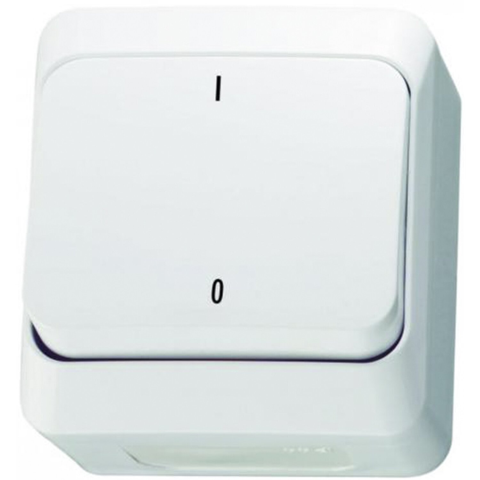 A kétpólusú kapcsoló egy lámpa, egy helyről történő kapcsolására alkalmas a fázis és 0 vezető megszakításával. Kiválóan alkalmazható vizes-nedves helyiségekben, mint pl. fürdőszoba, ahol a teljes áramtalanítás a cél. IP44 védelemmel ellátva, falon kívüli