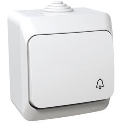 A nyomókapcsoló IP44 védelemmel rendelkezik, falon kívüli kivitelben készült. A billentyűn dekoratív csengőjel látható, fehér színben kapható.