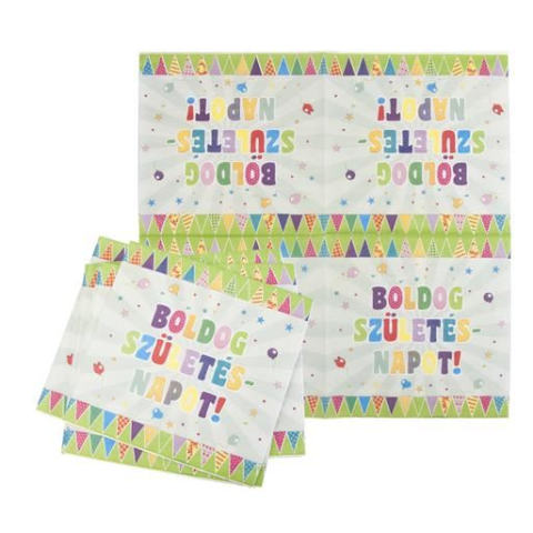 1 kép egyéb Szalvéta "Boldog Születésnapot" 33x33cm zászló minta (SRFUN044) (SRFUN044)