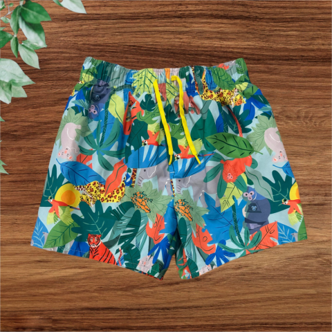 Színes állat mintás fürdőnadrág Egyenes szabású, dereka gumis és kötős, belül hálós résszel. Hibátlan állapotú.