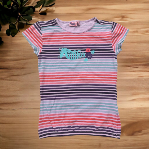 Színes csíkos felső Egyenes szabású, kerek nyakkivágású. Kellemes és kényelmes pamutos anyag. Szép állapotú.
