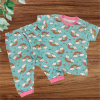 Szivárványos pizsama A felső egyenes szabású, kerek nyakkivágású. A nadrág dereka gumis, alja passzés szegéllyel. Kellemes pamut anyag. Hibátlan állapotú.