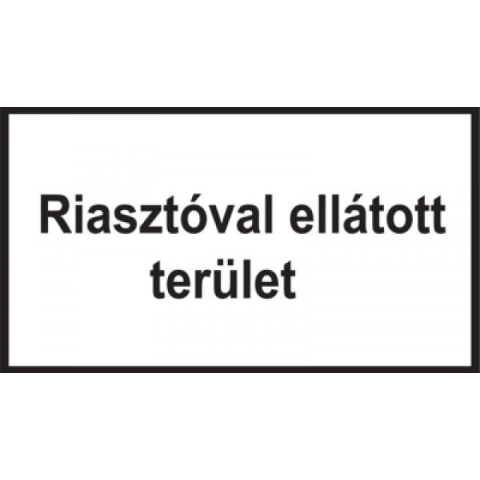 Figyelmeztető matrica öntapadós, 100x160mm RIASZTÓVAL ELLÁTOTT TERÜLET feliratú, belső üvegfelületre ragasztandó matrica. Minimális rendelési mennyiség: 10db. MRET0302F, figyelmeztető matrica. Figyelmeztető matrica öntapadós, 100x160mm RIASZTÓVAL ELLÁTOTT