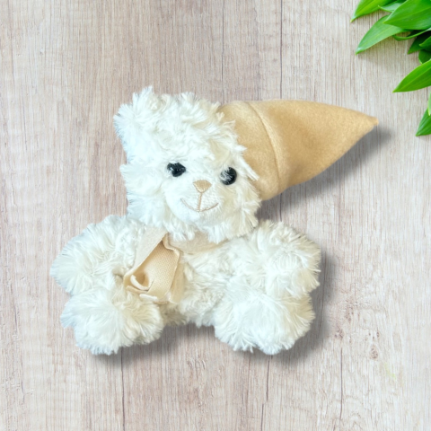 Teddy Bear kismackó sapkában, pihe puha plüss anyag. Méret 13 cm Hibátlan állapotú.