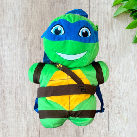Tini ninja plüss hátitáska Pántja tépőzáras és állítható, a fej része pakolható és cipzárral zárható. Méret:34cm Hibátlan állapotú.