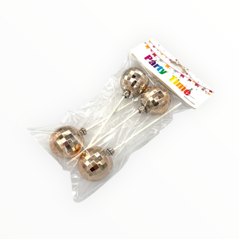 1 kép egyéb Torta beszúró, discogömb, 4cm, rose gold, 4db