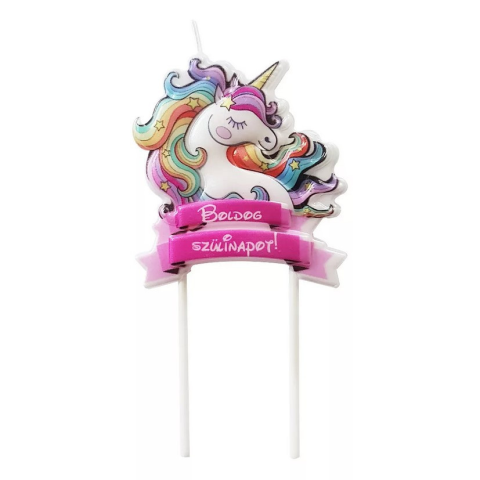 Színes egyszarvús tortadísz Boldog születésnapot! felirattal. Színes egyszarvús tortadísz Boldog születésnapot! felirattal, amely tökéletes választás varázslatos hangulatú szülinapi bulikra. Könnyen rögzíthető, és garantáltan feldobja a torta megjelené