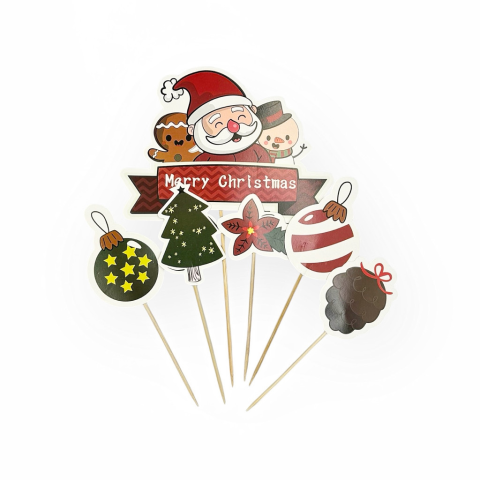 Tortadísz beszúró, Mikulás barátai, papír A Mikulás barátai papír tortadísz beszúró vidám és ünnepi hangulatot teremt bármely tortán. A Mikulást és barátait ábrázoló dizájn tökéletes kiegészítője a karácsonyi süteményeknek, örömet szerezve kicsiknek és