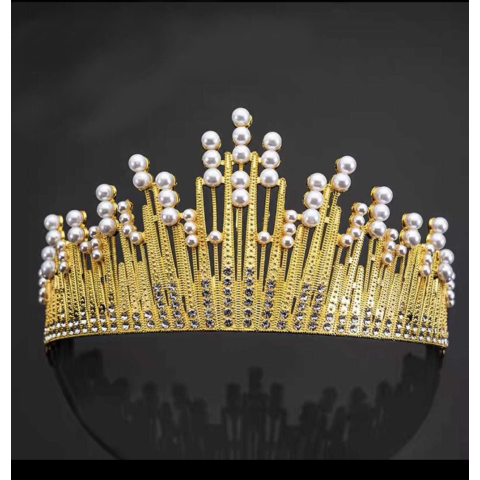 1 kép egyéb Tortadísz, tiara gyöngyökkel, arany, 15cm