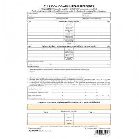 1 kép egyéb Tulajdonjog átruházási szerződés 4lapos garnitúra A.REND.3/2012
