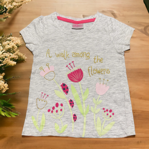 Elején csillámos felirattal és színes tulipánkkal, katicával. Kellemes pamut anyag. mell:2x25cm hossz:34cm Hibátlan állapotú.