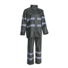 • 200 g/m2 vastag, 100% poliészterre mártott lágy PVC • 5 cm széles fényvisszaverő csík: 2 a test körül, és 2 a karokon + 2 a lábszáron • az alapanyag vízállósága: 2000 mm • hegesztett varrások • kétrészes ruha (kabát + nadrág), gallérba rejtett, zsinór