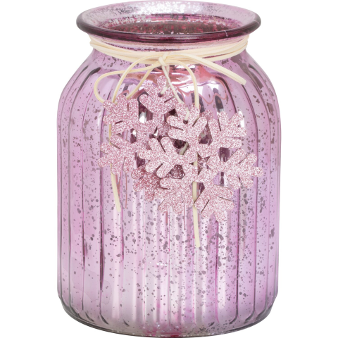 A beltéri ünnepi dekorációhoz használható, nagyon szép, díszített üveg gyertyatartó pink és ezüst színben. Adja meg az ünnepi asztalnak azt a különleges vonzerőt, amellyel a hangulatos világításról gondoskodhat.