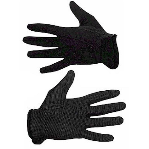 Kötött pamutkelméből varrt, mandzsetta nélküli kesztyű PVC-vel pontozott tenyérrel és ujjakkal, valamint rugalmas szalaggal a csukló felső részén.