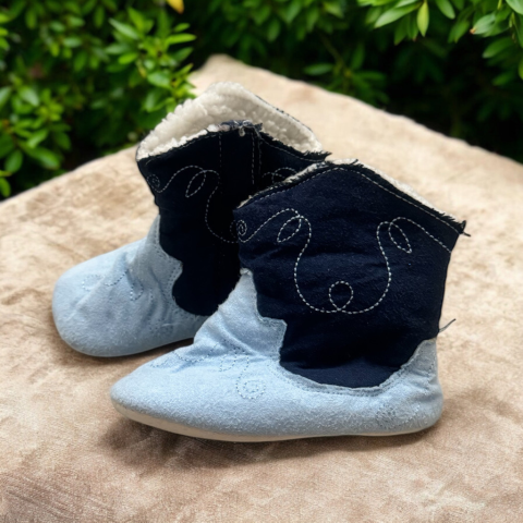 Velúr bőr csizma Puha szőrmés béléssel, oldala tépőzáras. Talphossz: 13 cm Hibátlan állapotú.